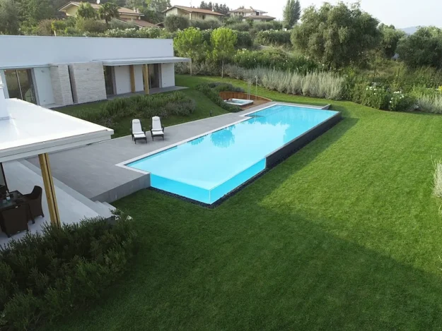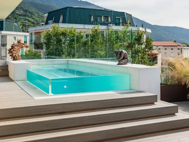 Piscine a sfioro Le piscine a sfioro sembrano piscine senza bordo. L’effetto “a specchio” che si ottiene proprio grazie a questo sistema è di grande impatto visivo e consente di giocare con la percezione dei volumi: la piscina sembra più ampia! Nella piscina bordo sfioro l’acqua fluisce nel canale perimetrale e da questo si riversa…